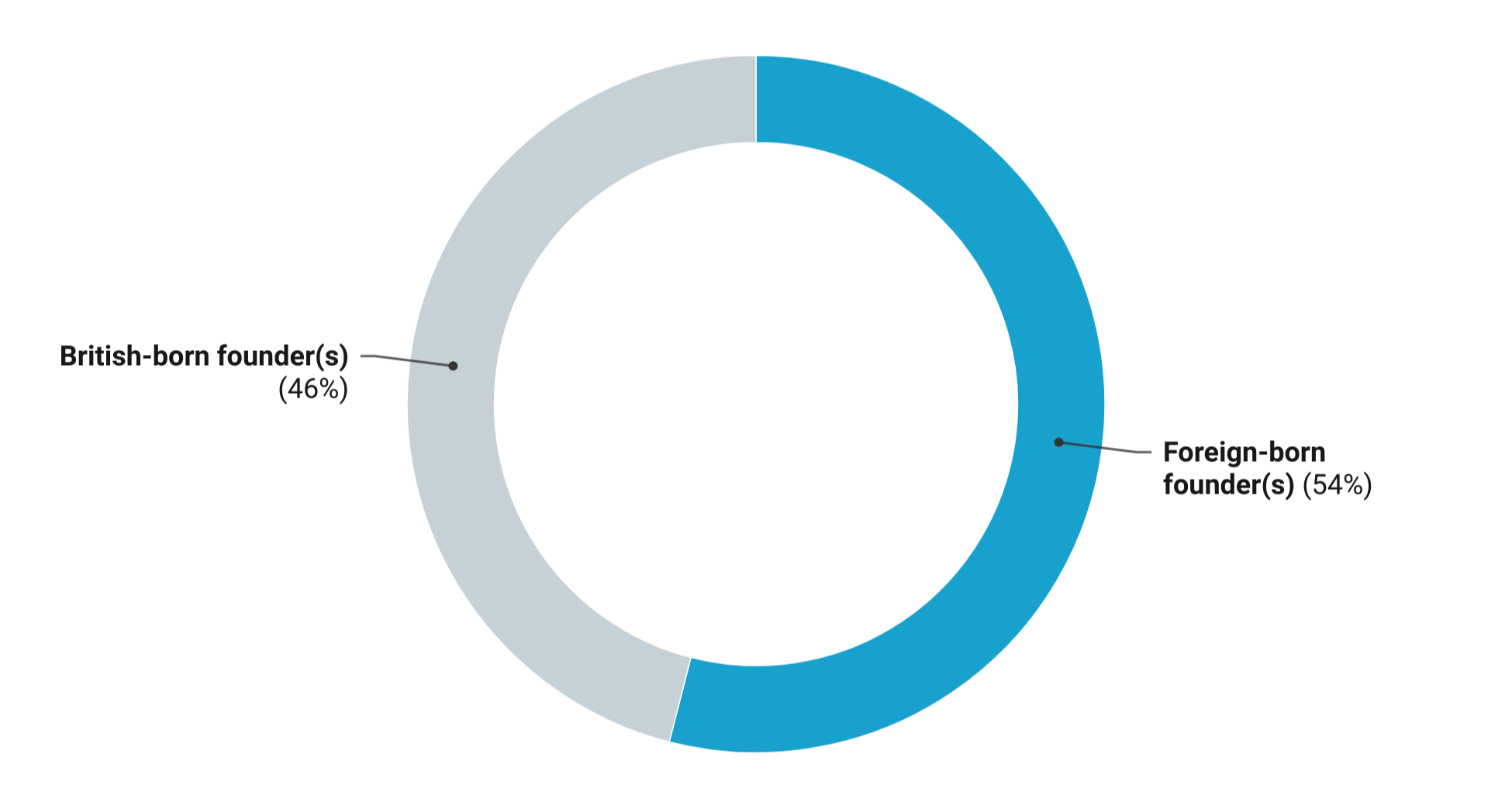 Our research has consistently found that immigrants play a disproportionate role in starting some of Britain’s most lucrative and innovative companies. In our most recent analysis, 54% of Britain’s 100 fastest-growing companies had a foreign-born founder or co-founder.